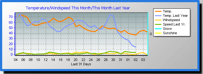 Minimum temperature     = 30.4°F on day 02 at time 07:19